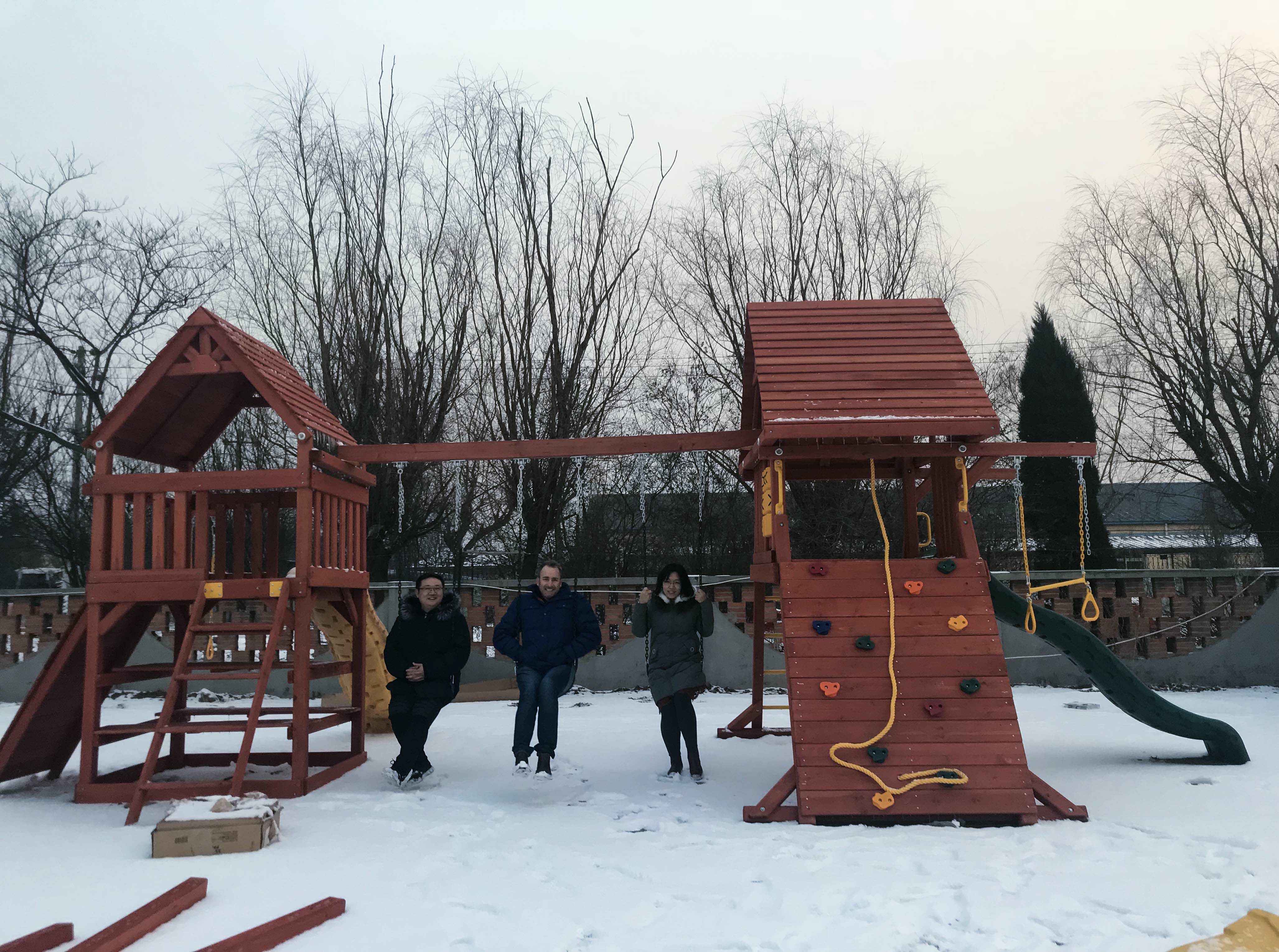 SE公司采购经理Michael第一次来到Pafic洽谈swing set的合作事宜,对产品优秀的质量印象审核,并与Frank和Jo快乐地进行试玩。
